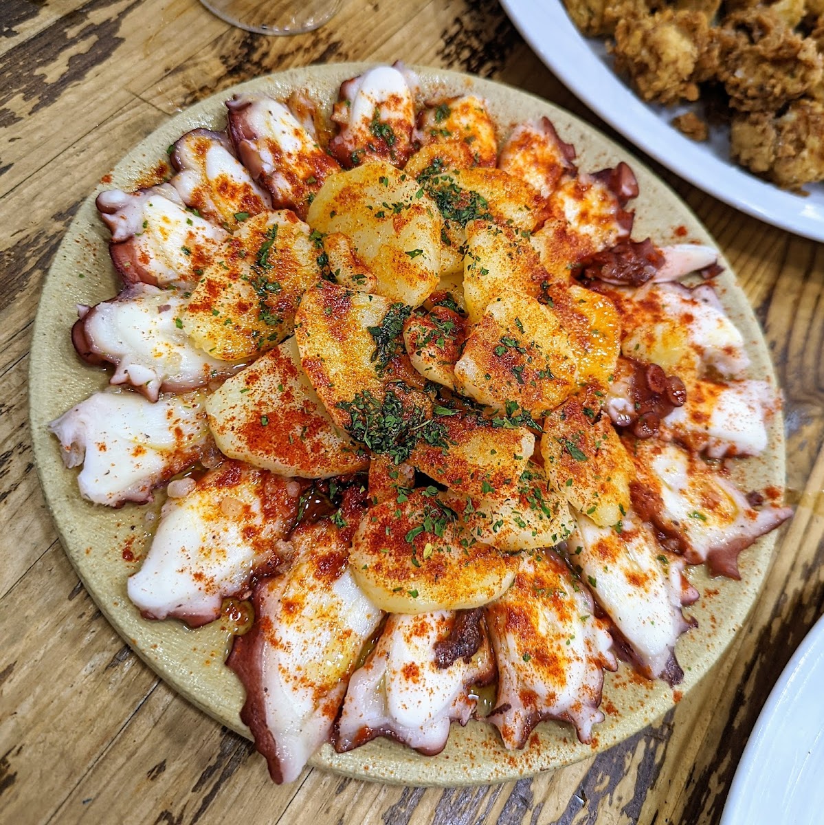 It's a real local bar. Crowded, great hot (not so spicy) potatoes with every drink! I'm allergic to pork, but regularly it comes with pork. Nice place!! Recommended if you want to have a very Spanish experience